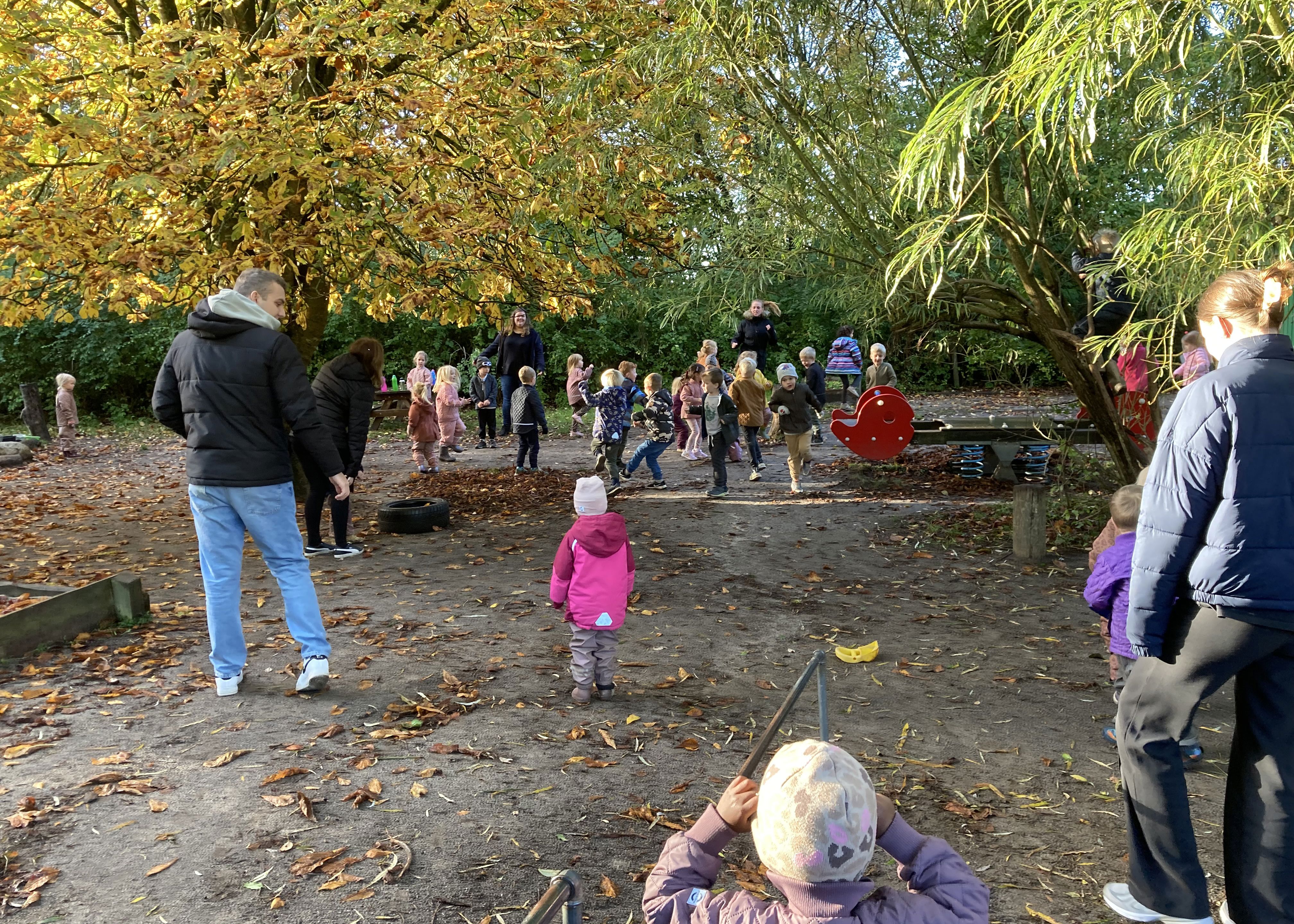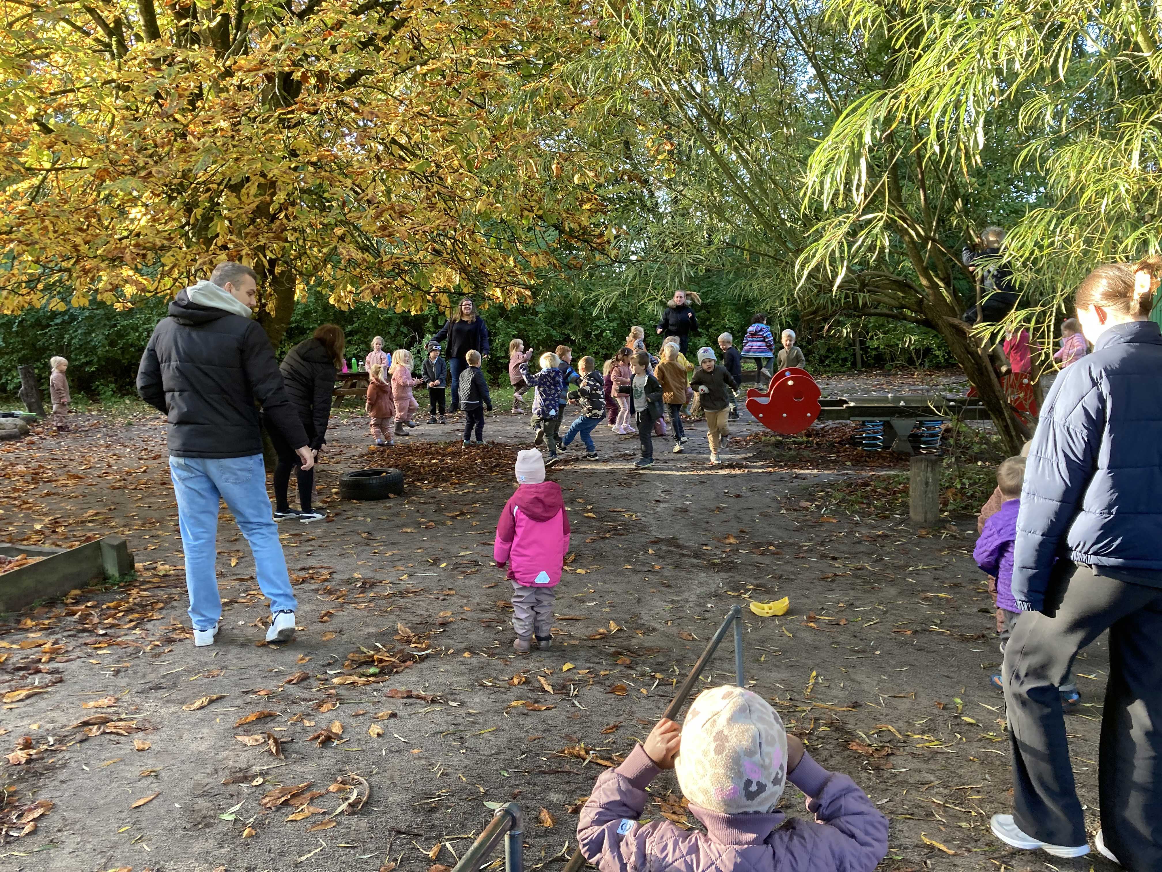 Vi har lækre udendørs faciliteter der kan styrke børnene motorisk og samtidig skabe masser af små oaser, hvor børnene uforstyrret kan lege. Vi har en legeplads der er inddelt i zoner, så små grupper af børn kan lege, uden at blive forstyrret af de andre børn og altid med en nærværende voksen der kan igangsætte aktiviteter eller observere legen.